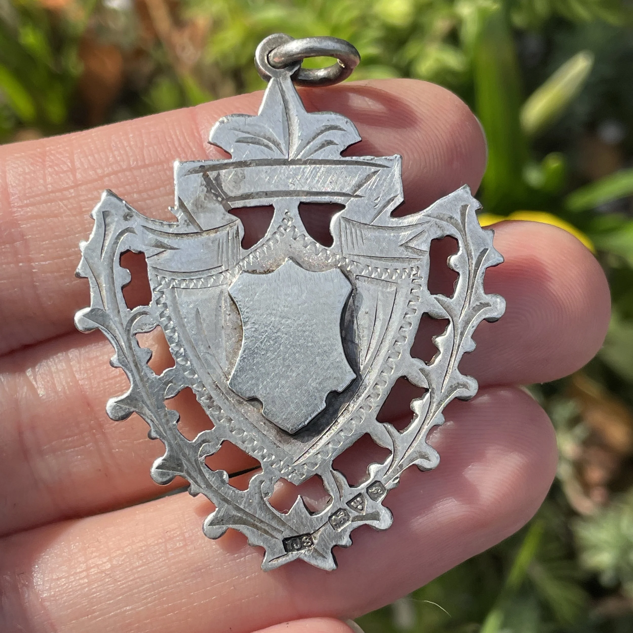 1901 Sterling Silver Engraved Leaf & Shield Vesta Locket / Pendant - Chester
