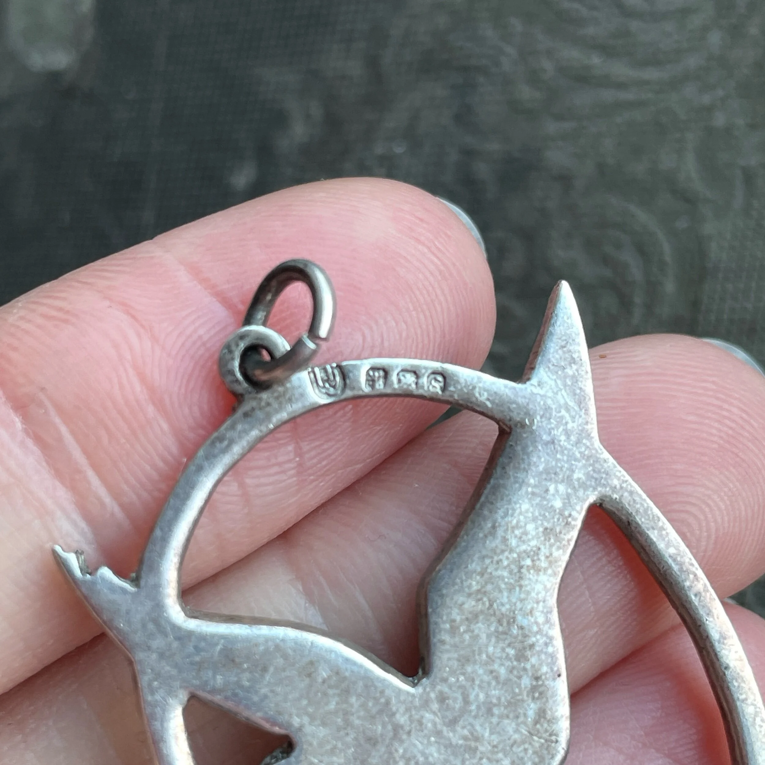 Vintage 1979 Sterling Silver and Enamel Flying Swallow Pendant - Edinburgh Hallmark