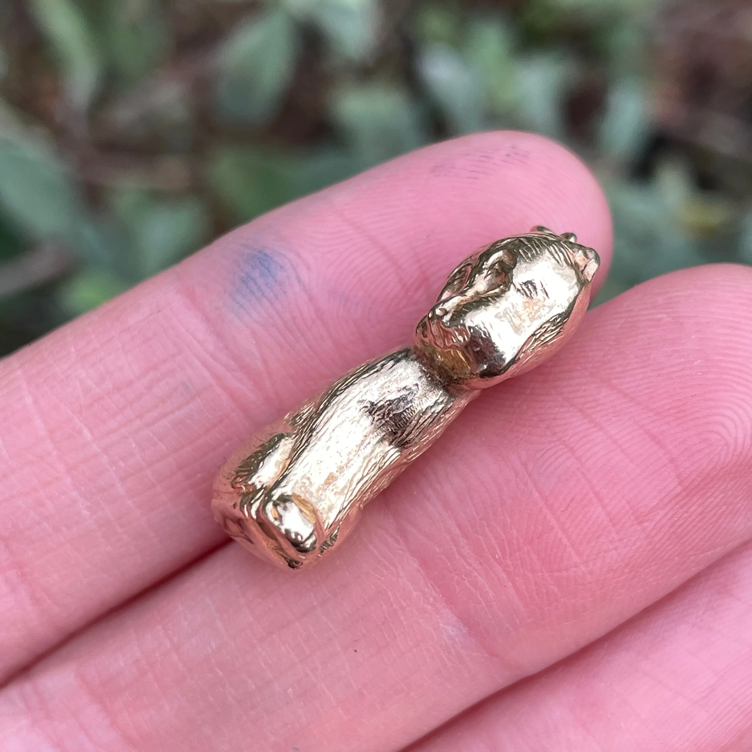 The total length with the split ring at the top is 2.9cm (the dog alone is 2.4cm) and it’s 1.3cm across the widest point. It weighs 1.5 grams.