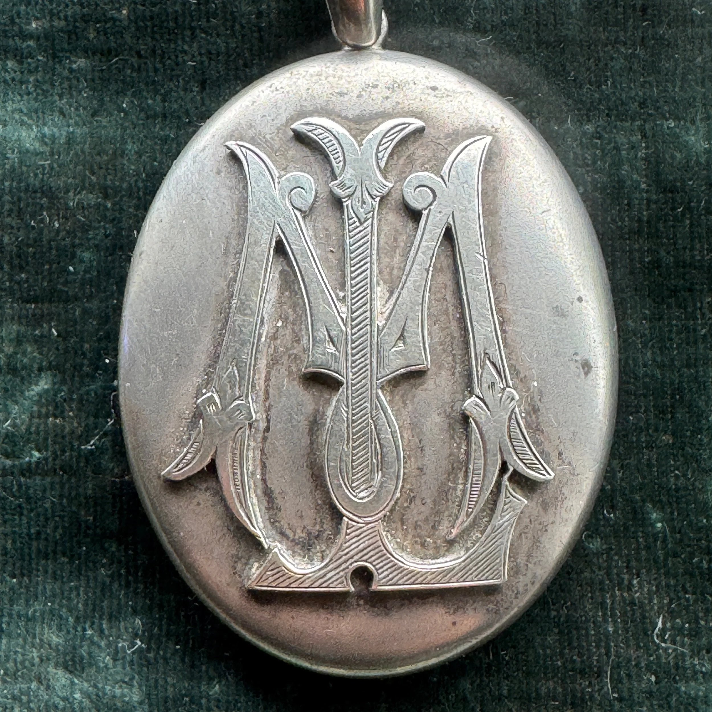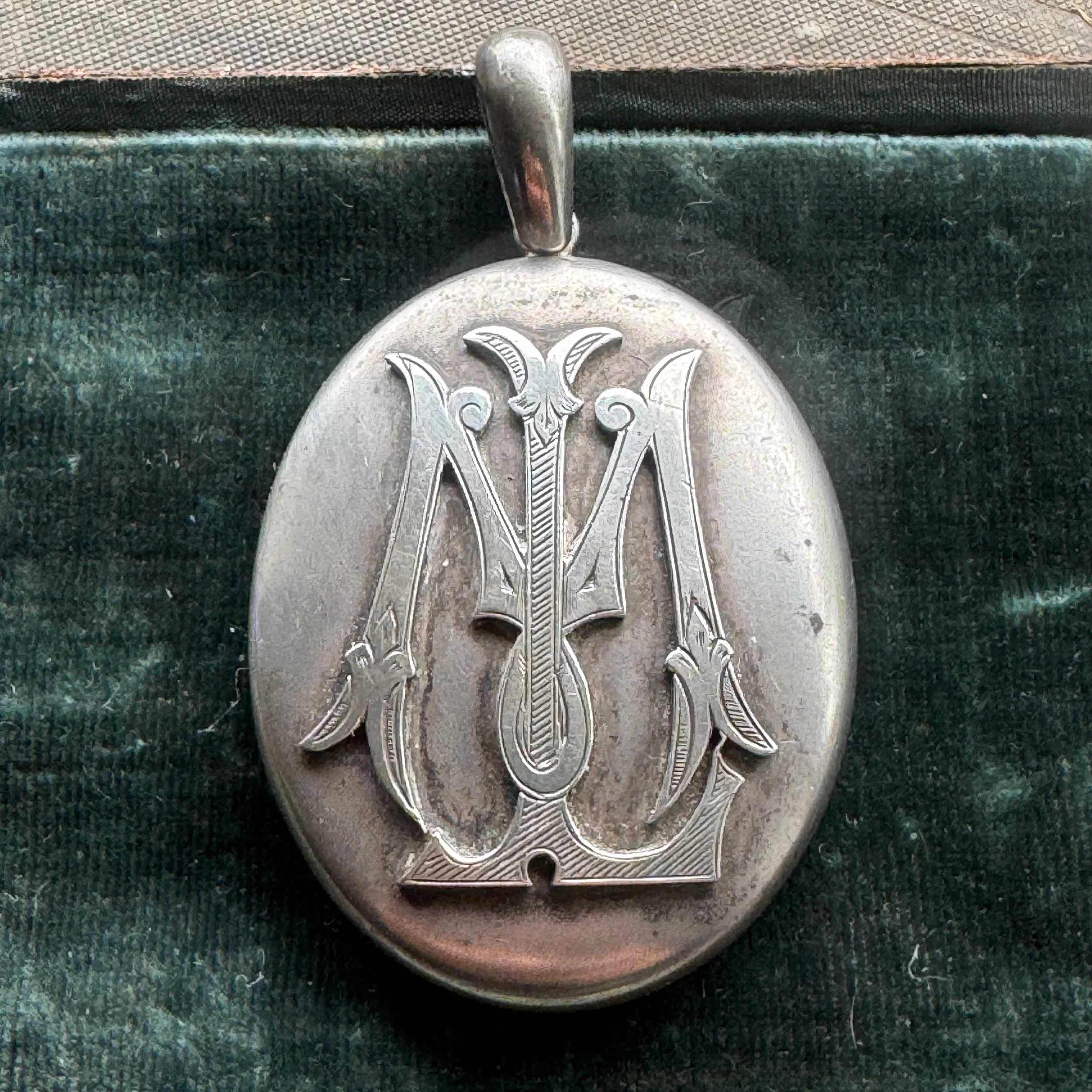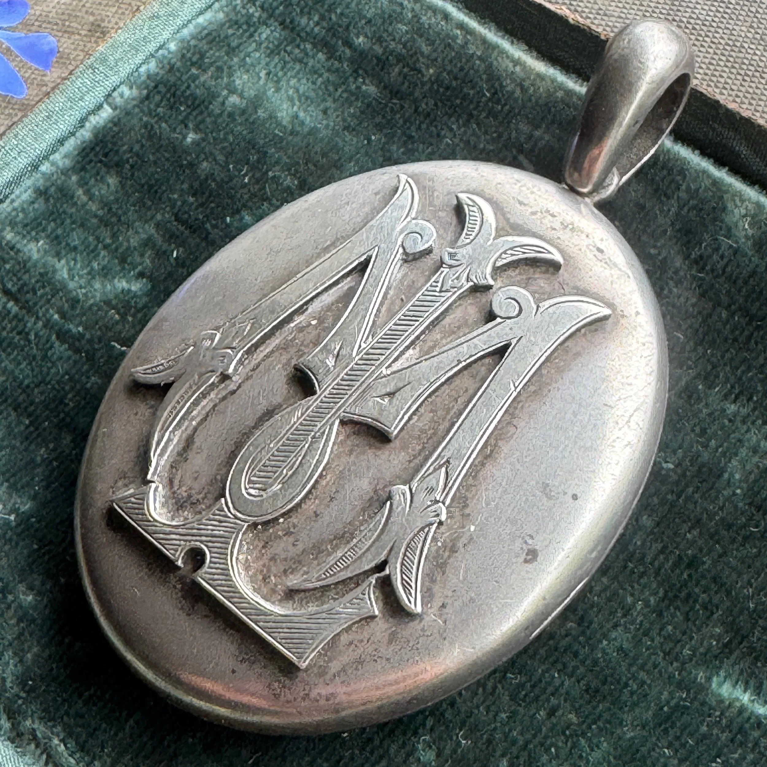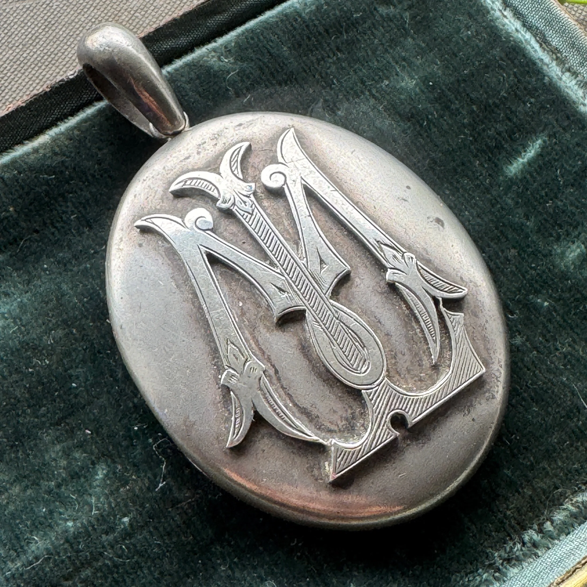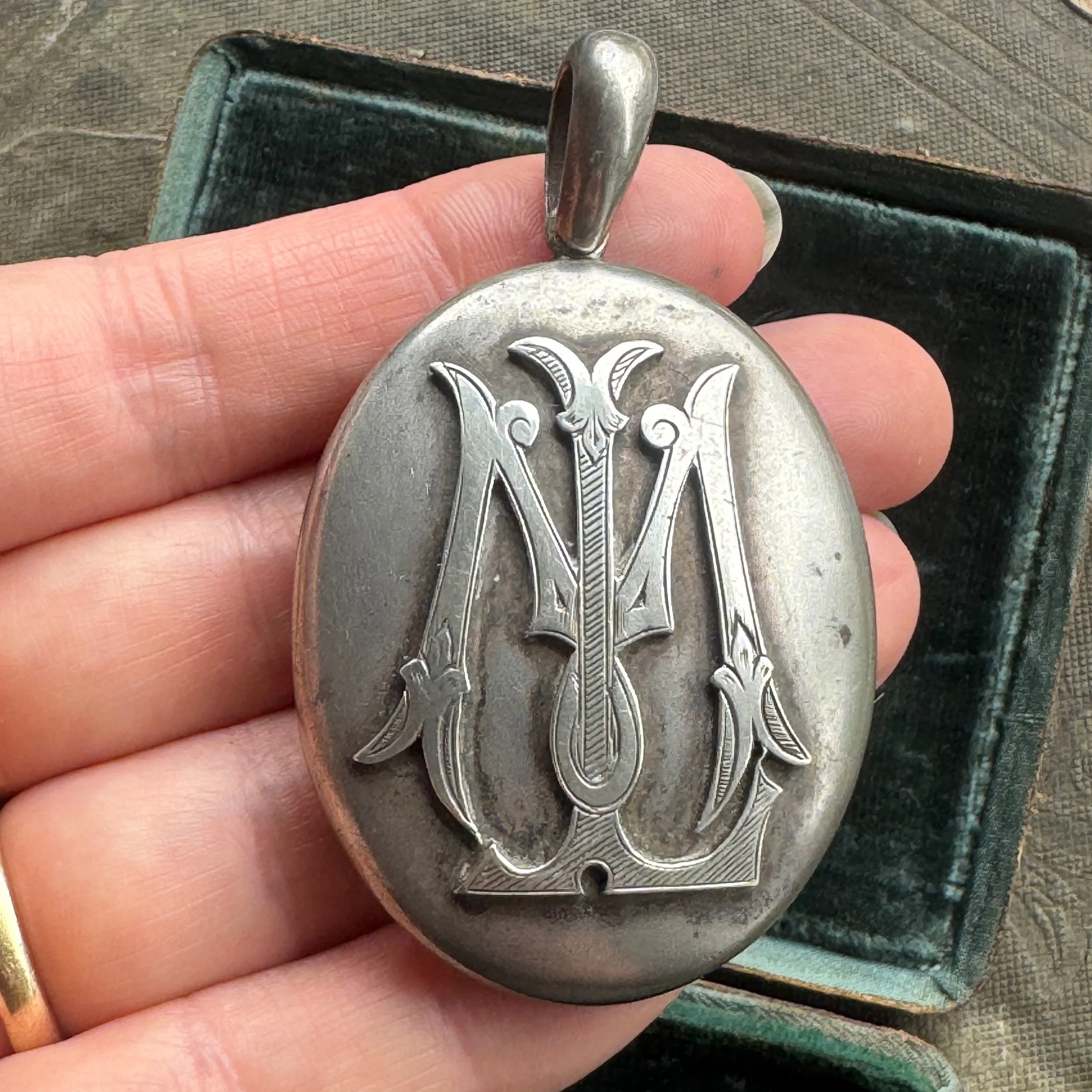 Victorian Solid Silver Locket with ML / LM Monogram - Large and Heavy!
