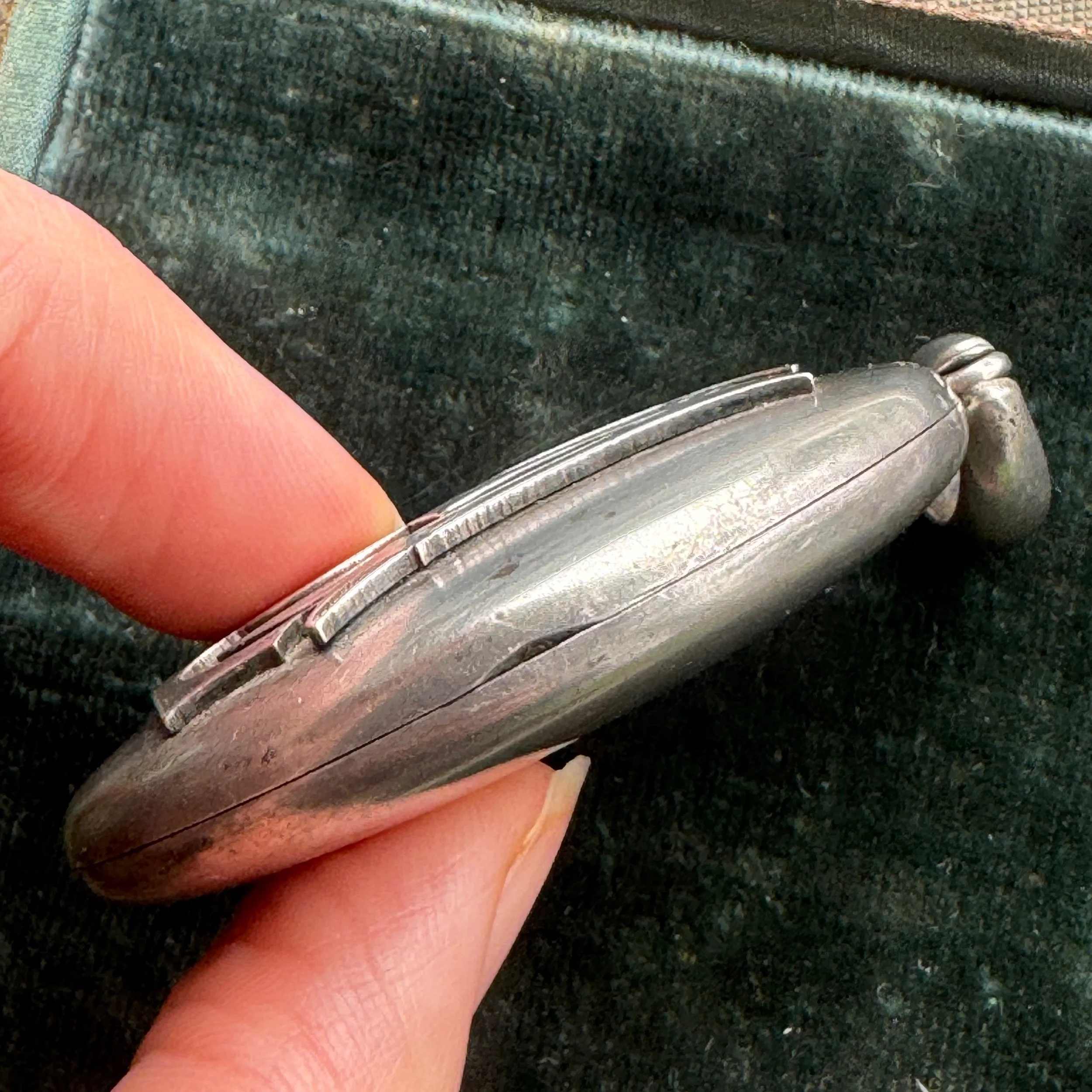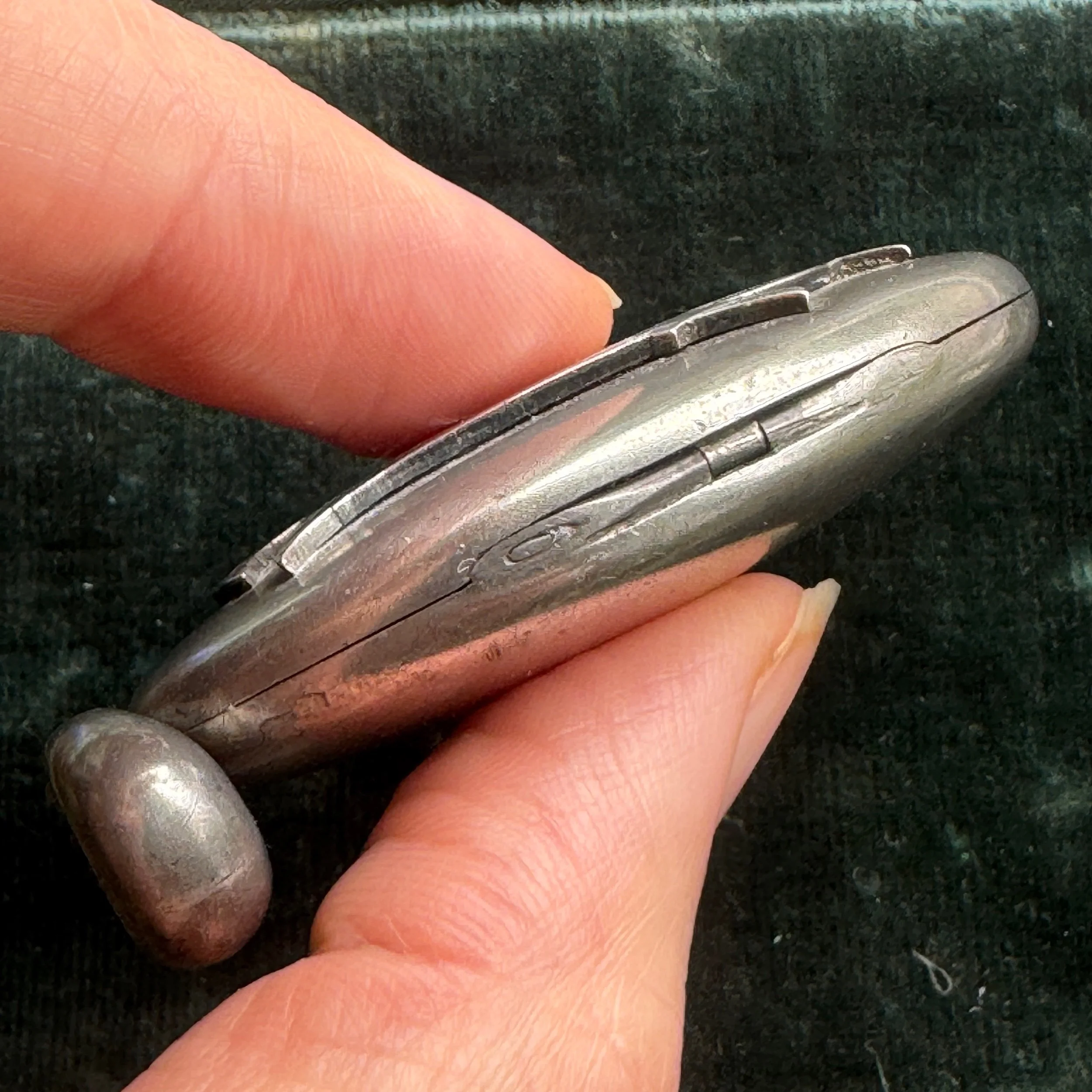 Condition: Very good uncleaned antique condition. The hinge and closure work perfectly and it snaps shut. Just has the usual marks and tarnish to the silver which you'd expect on an antique item.
