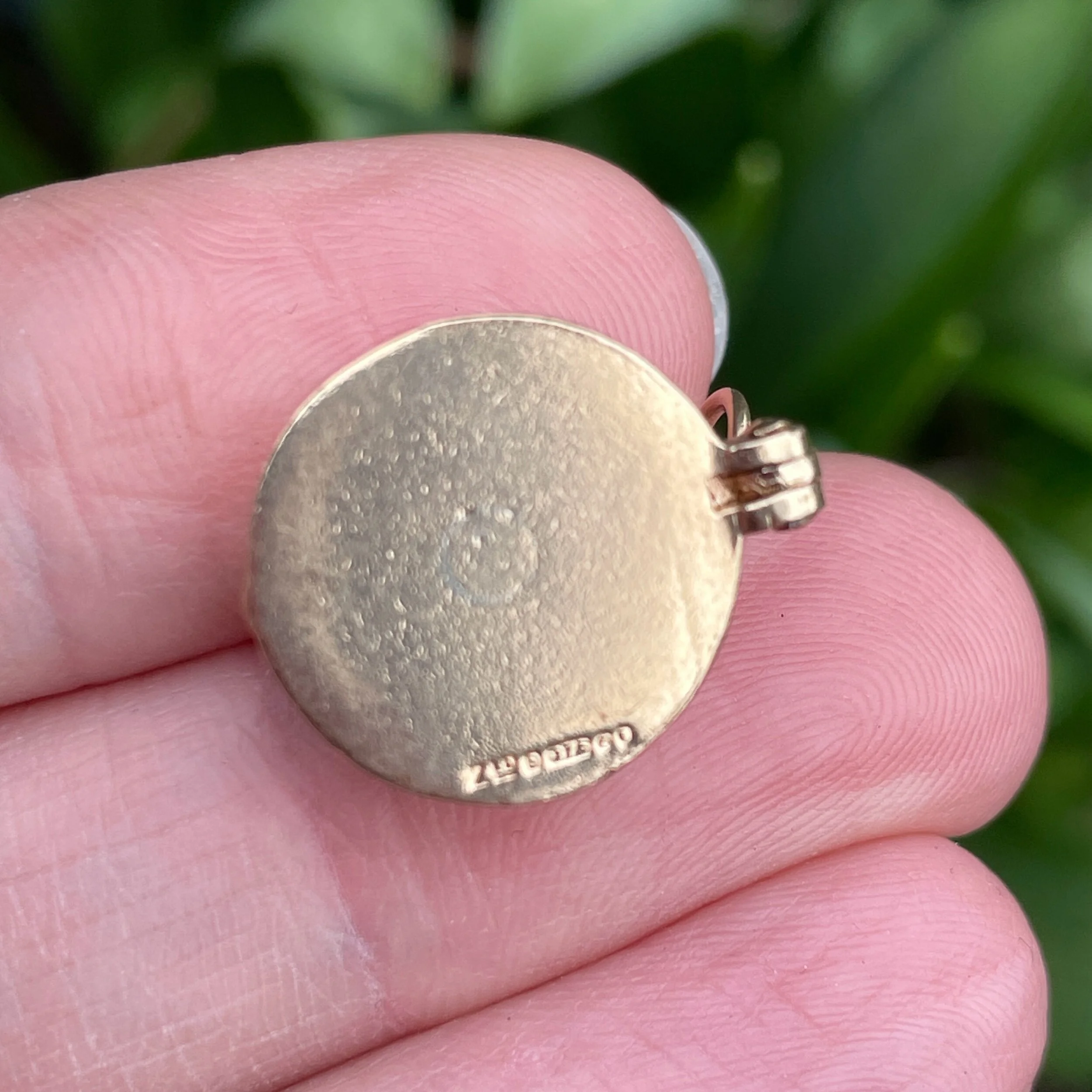 This pendant is made from 9ct yellow gold. It depicts an observatory, which opens up to reveal the hinged telescope inside. It has a full UK hallmark on base, with the date letter for 1972. There’s a jump ring at the top for hanging and this is currently soldered closed.