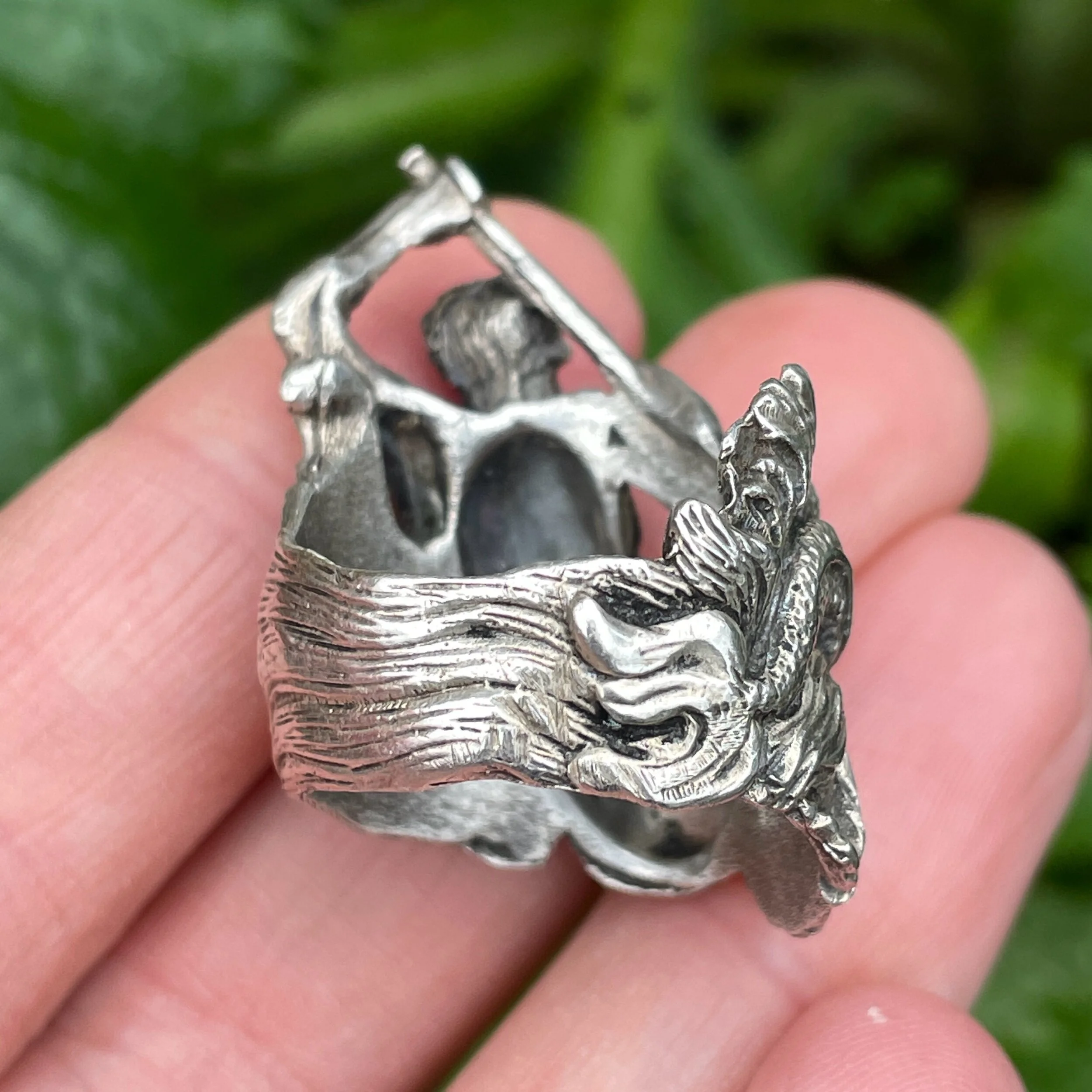 Vintage The Great Frog 1972 Hallmarked Sterling Silver Poseidon Neptune Ring - - Size S