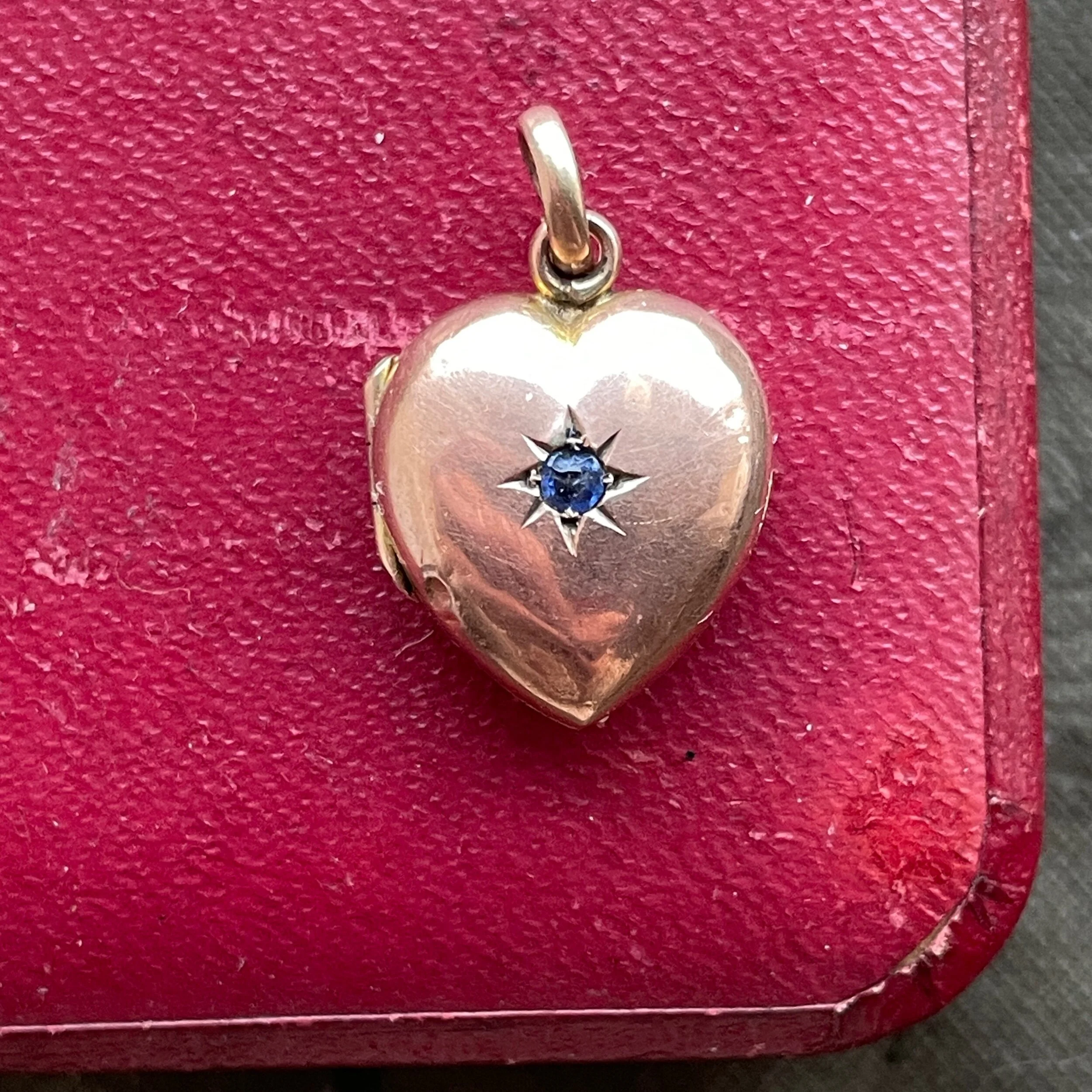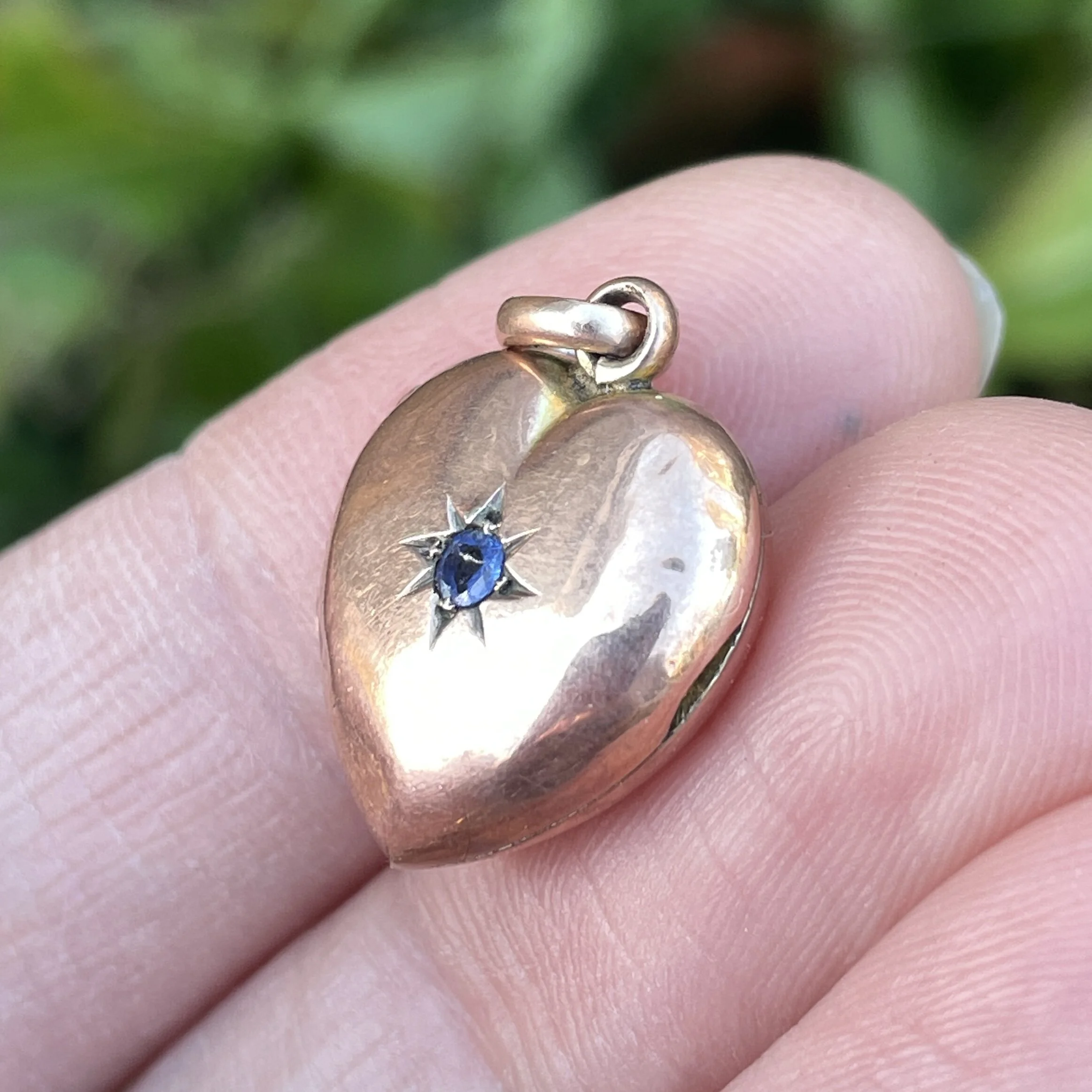 Antique 14ct Rose Gold Opening Heart Locket with Blue Stone