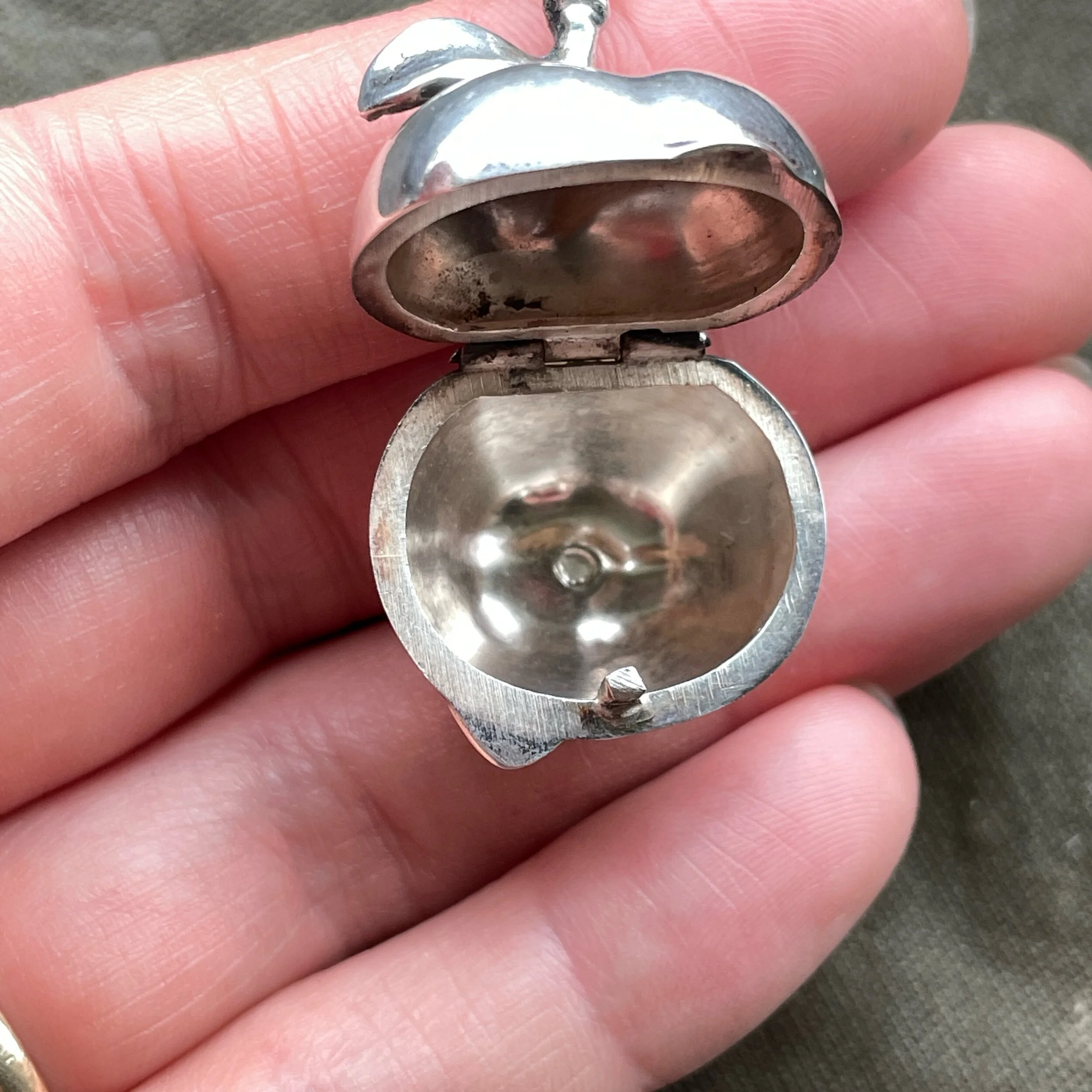 Here I have a vintage sterling silver pendant in the shape of what I think is a cherry (though could be an apple!). It opens to reveal a compartment inside and there’s a good sized bale at the top. It’s faintly stamped 925 and T&C on the little protruding ledges which you use to open the locket. Make of this what you will, it’s nicely made and the person I bought it from swore it came from the New York store years ago but I have no way of corroborating this and I’m struggling to find similar online to compare it to so I’m selling it as a interesting and unusual piece just in its own right.