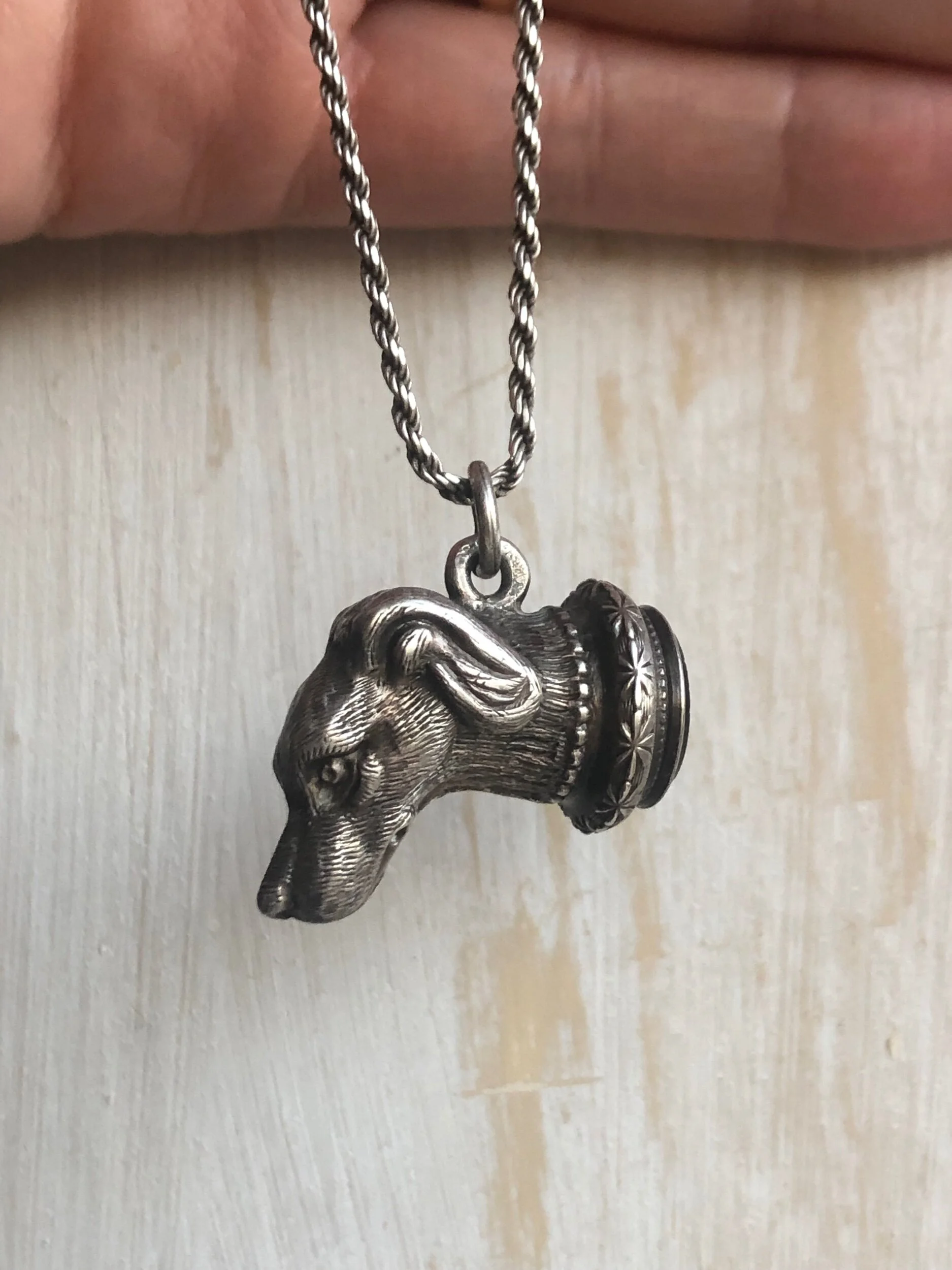 Rare Victorian Silver & Banded Agate Dog Head Fob Pendant