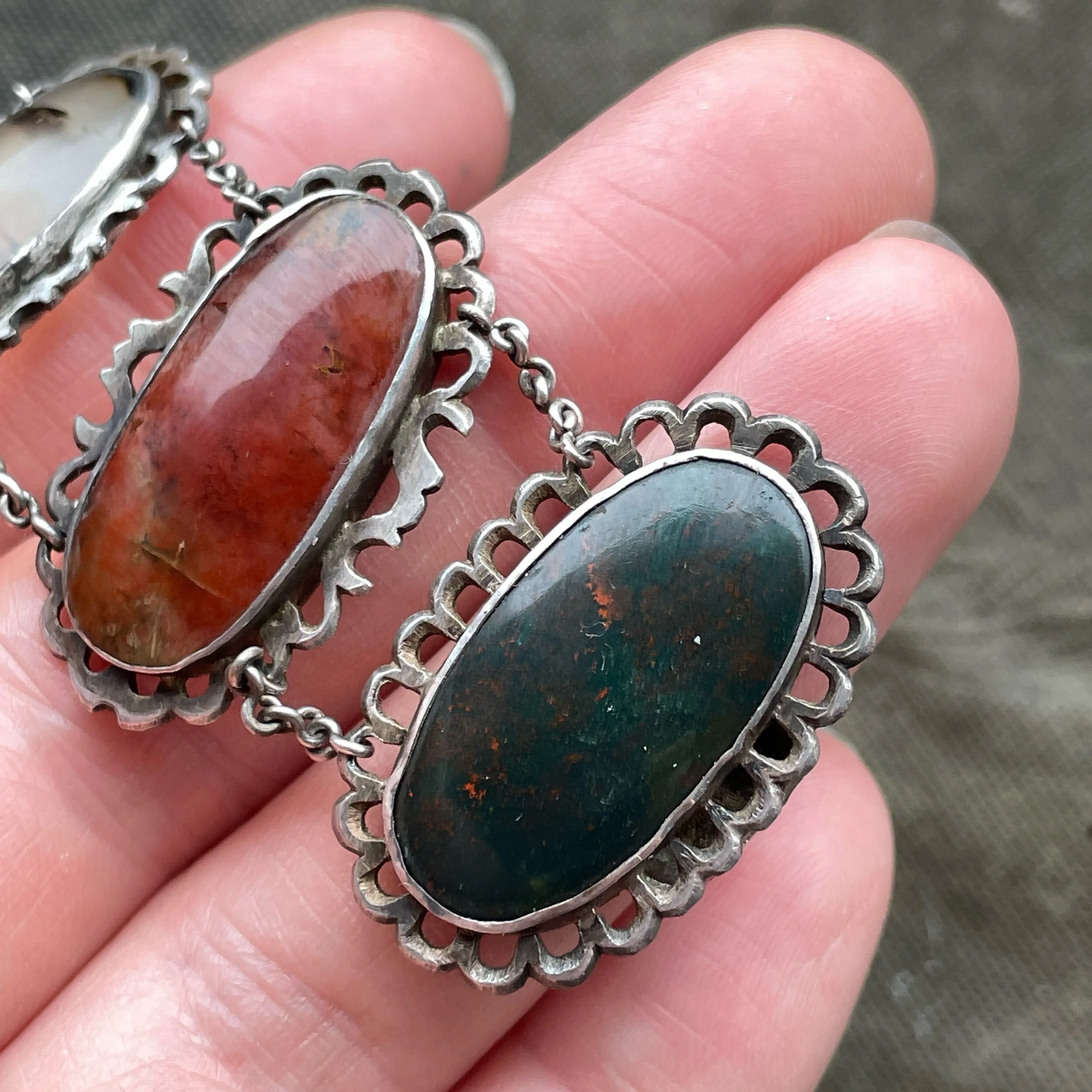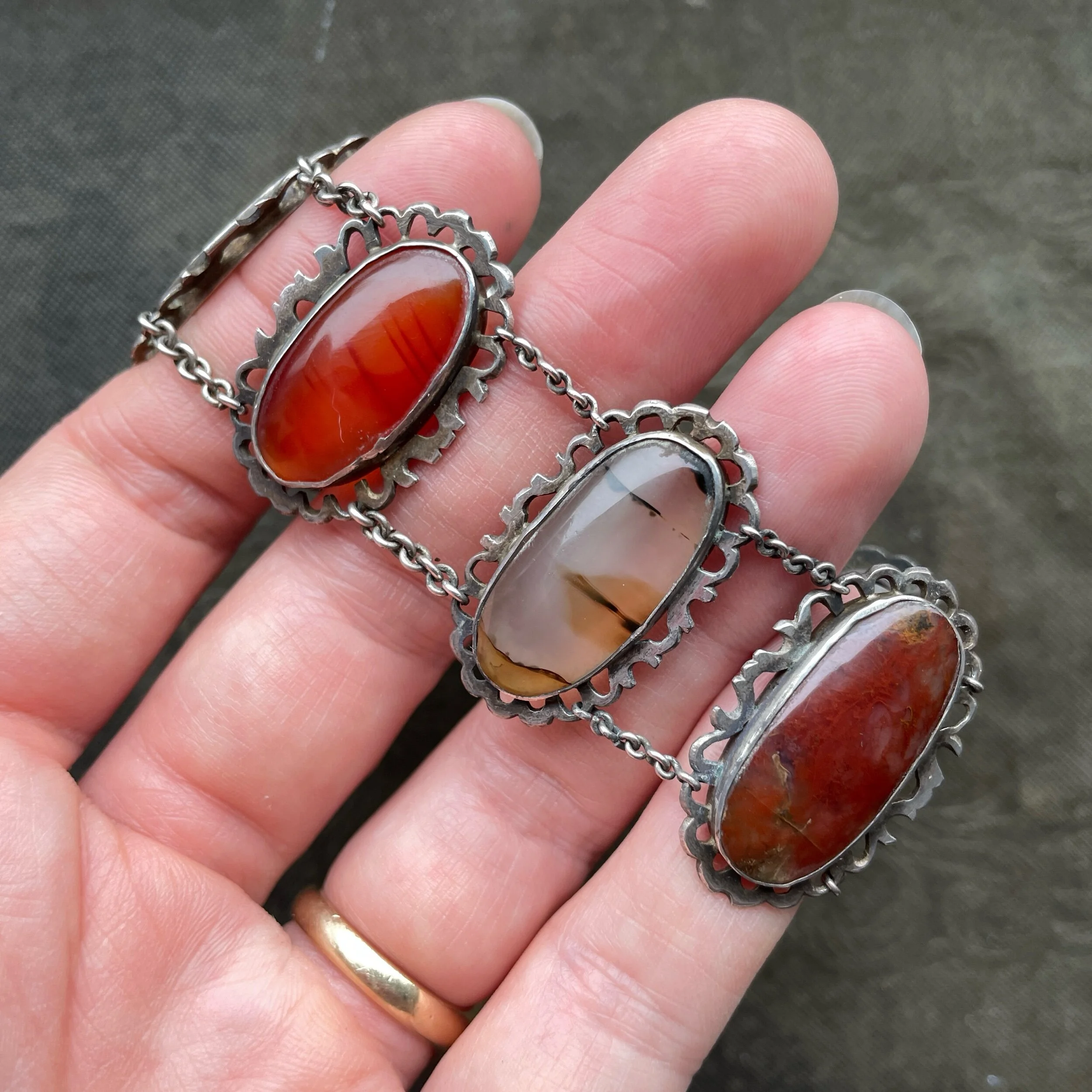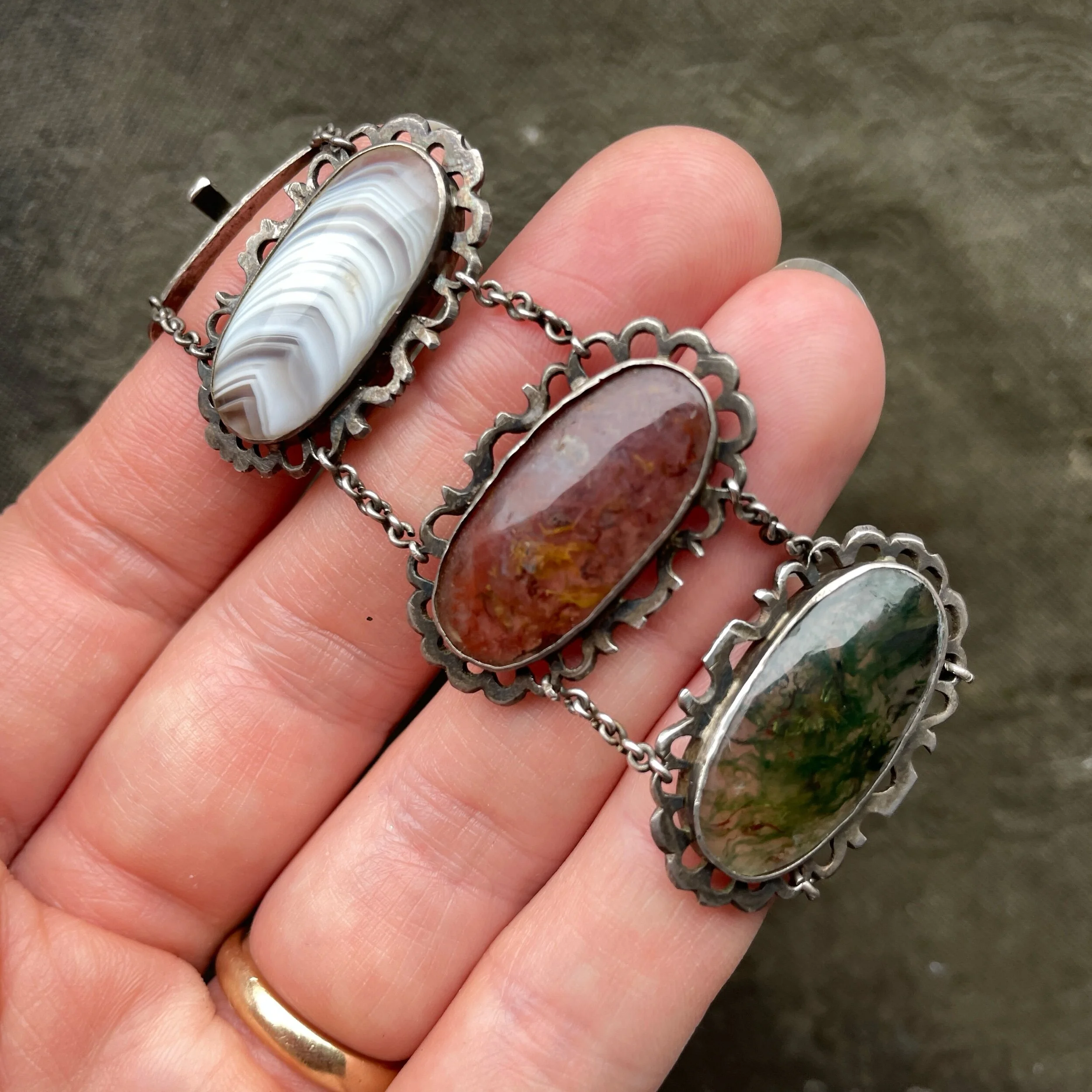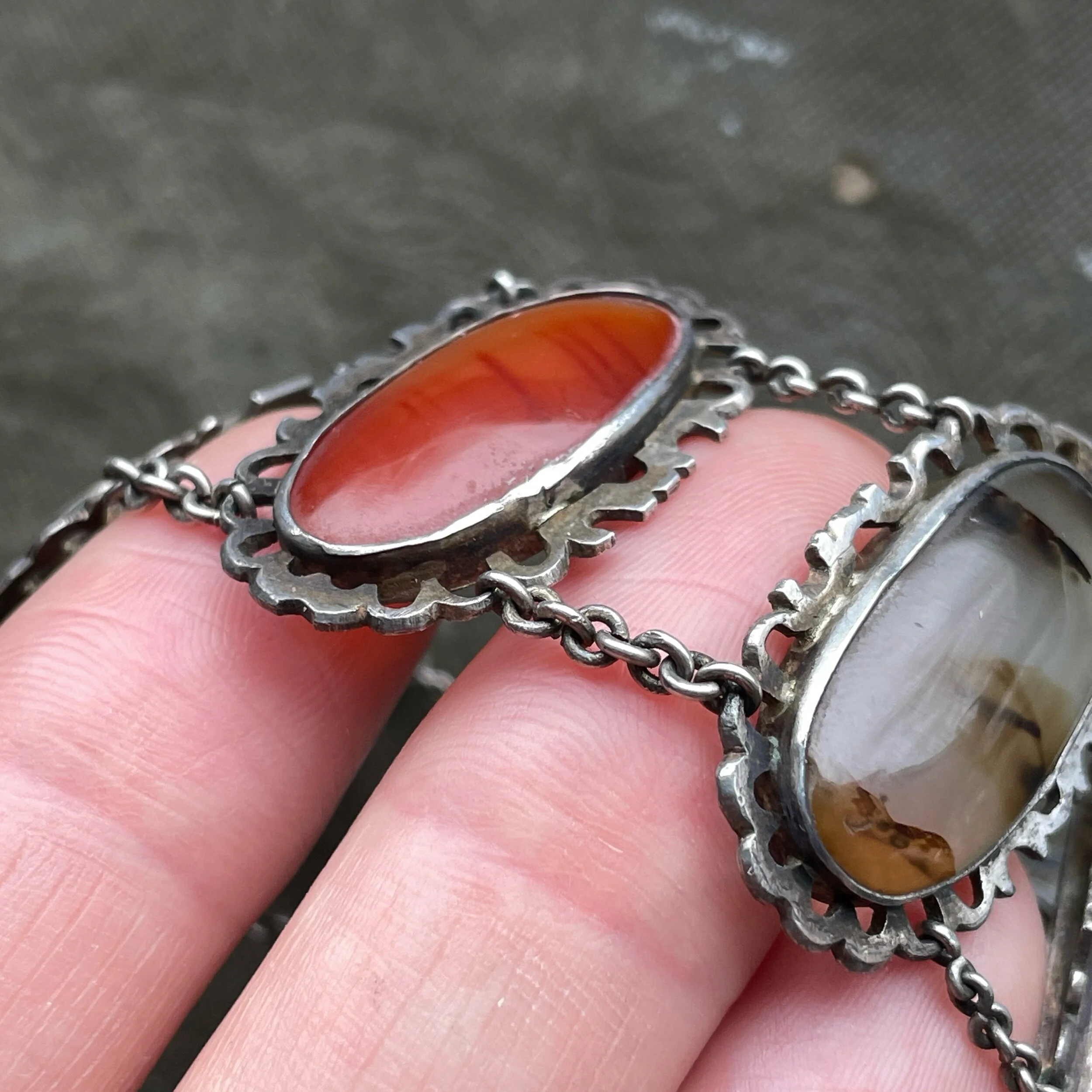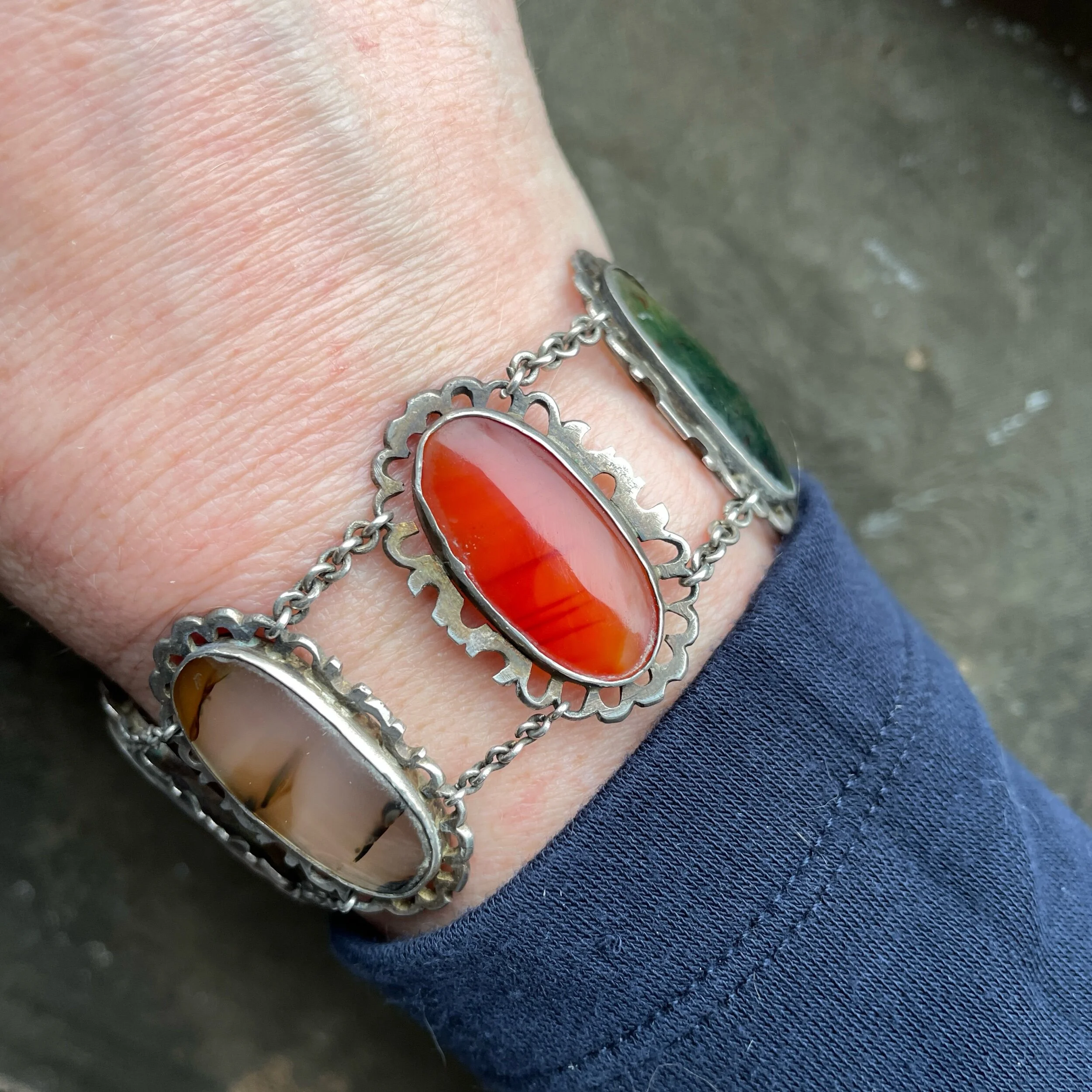 Antique Victorian Silver and Scottish Agate Panel Bracelet